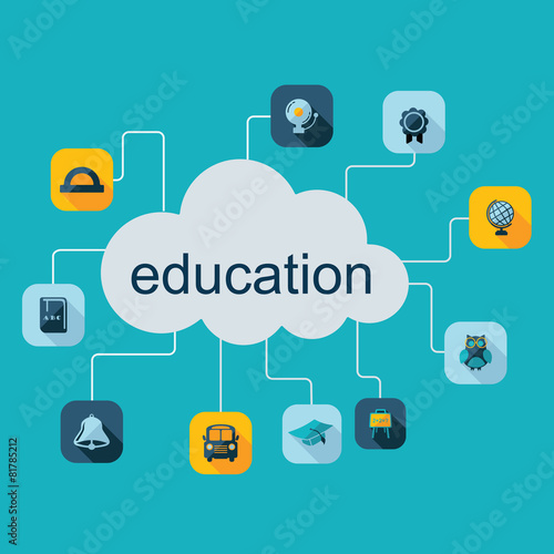 Flat concept, set modern design with shadow education icons