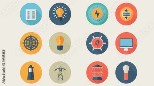 Flat Design Energy and Technology Icons