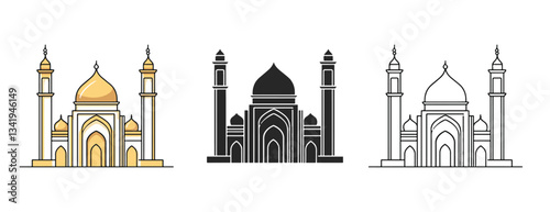Flat Design Mosque Top View Illustration, Silhouette, Outline
