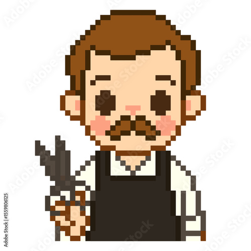 Flat Design Pixel Art Barber Illustration