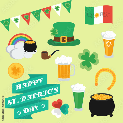 Flat elements on St. Patrick's Day. Set. Banner. vector