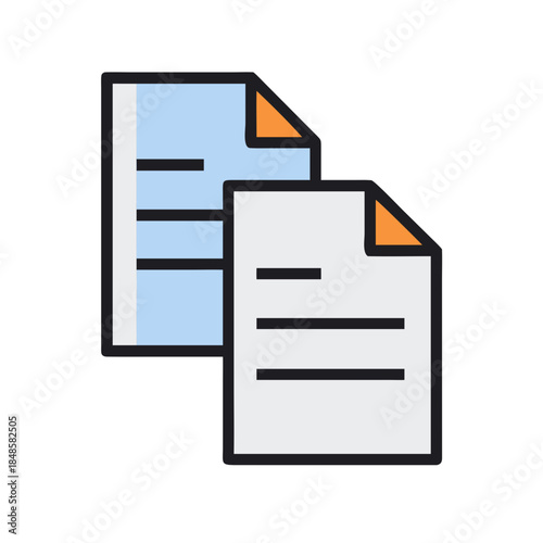 Flat graphic of two documents with folded corner on a black background