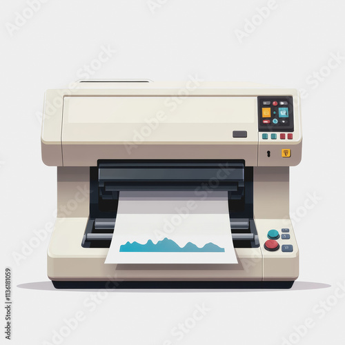Flat Icon Printer with Paper on It High Quality Graphic Design for Digital Marketing and Print Media Applications