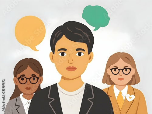 Flat illustration. Iconic character representing the concept of critical thinking, using emojis or bubble.