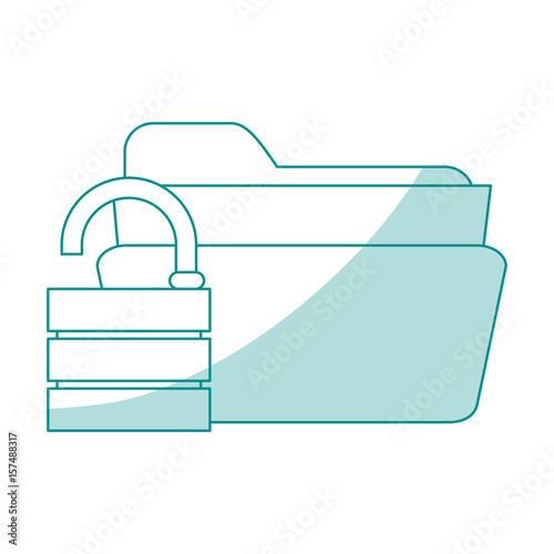 Flat line monocromatic folder and unlocked lock over white background. Vector illustration.