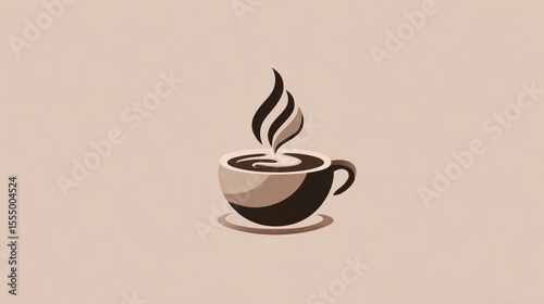 Flat minimalist logo of a coffee shop showing an abstract coffee cup with three soft, curved steam lines rising above it.