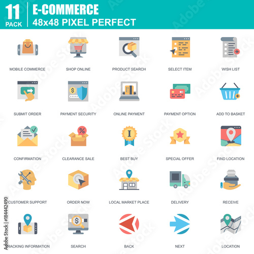 Flat online shopping and e-commerce icons set for website and mobile site and apps. Contains such Icons as Online Payment, Support. 48x48 Pixel Perfect. Editable Stroke. Vector illustration.