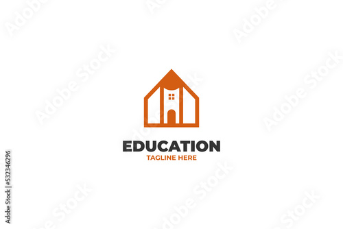 Flat pencil with home logo design vector template
