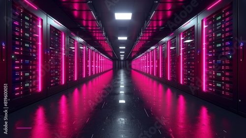 Flat solid color illustration with no gradient: charcoal data center on neon pink background