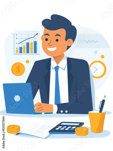 Flat style business, office, and financial workers illustration of work scenes in front of desks