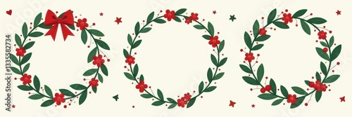 Flat style Christmas wreath doodle Simple, festive design , red, white