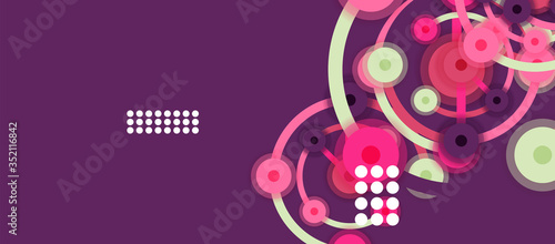 Flat style geometric abstract background, round dots or circle connections on color background. Technology network concept.
