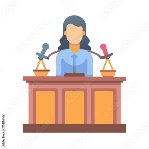 Flat vector illustration of a judge in courtroom setting