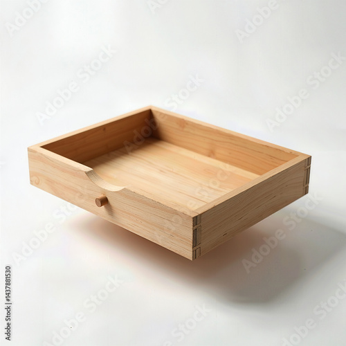 Flat view of an empty modern plywood drawer on a white background, captured with clean studio lighting for product photography.