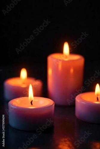 Flickering Candlelight Serene Close-up of Warm Candle Flames Illuminating a Dark Background, Perfect for Relaxation, Meditation, and Spiritual Themes