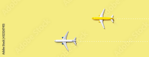 Flights booking and reservation theme with two miniature airplanes