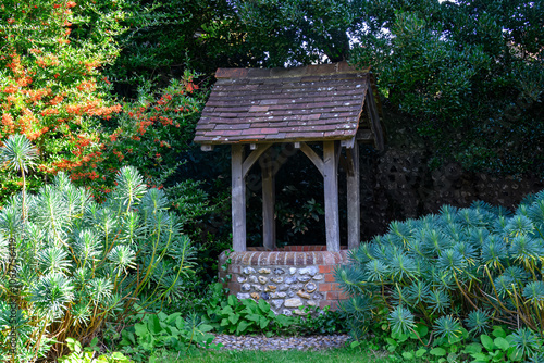 Flint water well in Kipling gardens Rottingdean East Sussex England