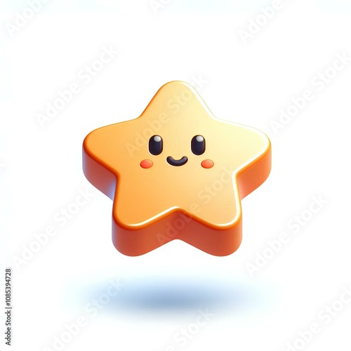 Floating 3D Cartoon Star Icon on a White Background
