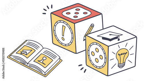 Floating Cubes Education Concept Vector Illustration Yellow Red