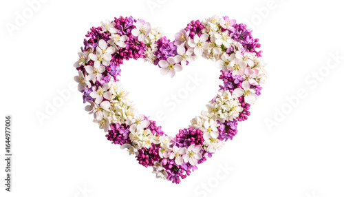 Floating realistic human heart made of blooming flowers with delicate petals and vibrant natural colors blending into a captivating artistic composition isolated on solid white background in Png
