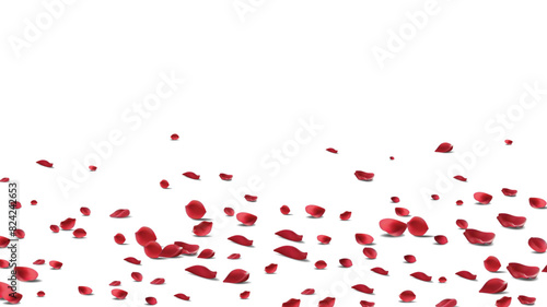 Floating red rose petal isolated on white. Background concept for love greetings on valentines day and mothers day. Space for text. rose for love Beautiful floral