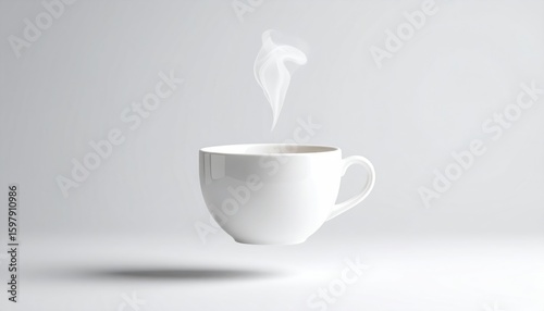 Floating White Teacup With Rising Steam On Clear Background