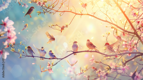 flock of birds sitting on a tree branch