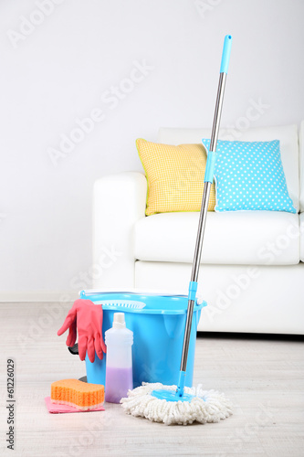 Floor mop and bucket for washing in room