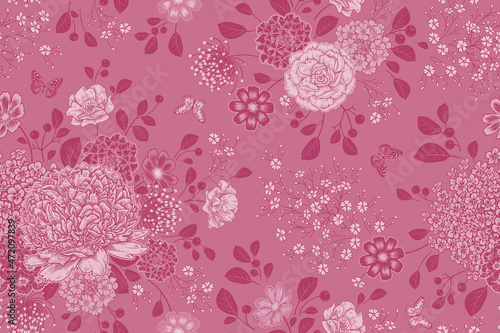Floral background. Vintage seamless pattern. Vector.