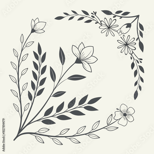 Floral corner design with elegant flowers and leaves, perfect for decoration. floral