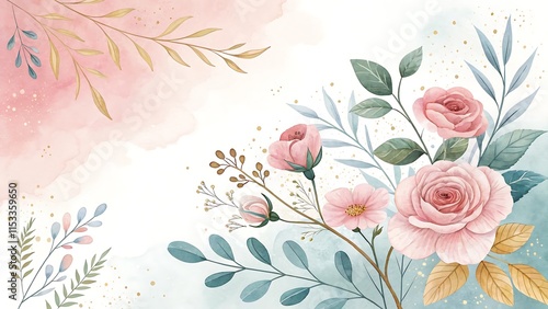 Floral Elegance: Pink Roses and Green Leaves Watercolor