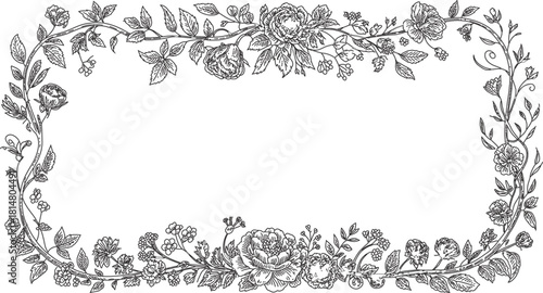 Floral Frame Design - Hand-Drawn Roses and Leaves Border - Vintage Botanical Sketch for Invitations, Cards, and Wedding Designs