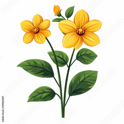 Floral Illustration of a Yellow Flower. Vibrant and Cheerful Botanical Design for Natural Garden Decor
