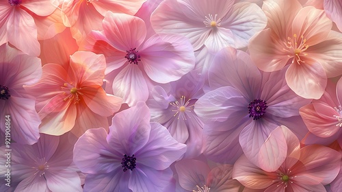 Floral pattern in pastel shades, delicate pink, lavender, and peach flowers, intricate and elegant design, high-definition quality, seamless and light. --ar 16:9 --v 6.0 --s 250 --style raw