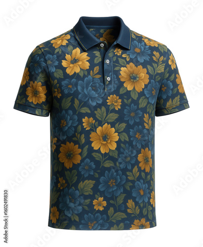Floral print polo shirt with a relaxed fit and vibrant color palette