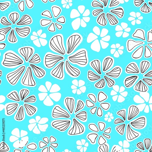 Floral seamless background pattern. Colorful spring flowers hand drawn, vector. Spring summer. Fabric swatch, textile design, wrapping paper