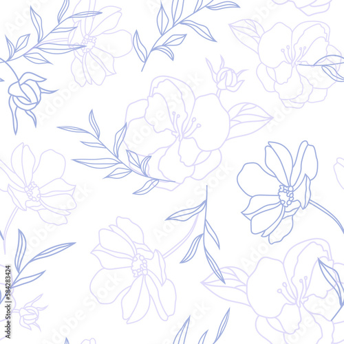 Floral seamless pattern with flowers and leaves. Background for wedding invitations, wallpaper, textile, wrapping paper.