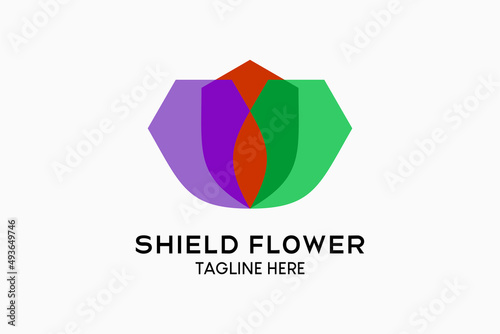 Floral shield logo design with a creative and simple stacked concept. Modern vector illustration