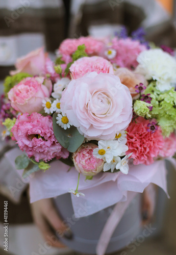 Flower composition of dried flowers. Macro photo. Wedding decor. A Beautiful bouquet of fresh flowers.