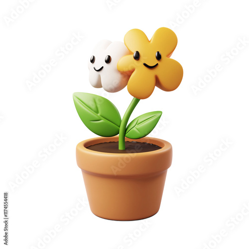 Flower in a pot with happy faces icon isolated on transparent background