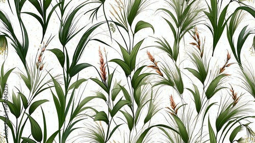 Flower Ornamental Grasses abstract seamless patt on white background