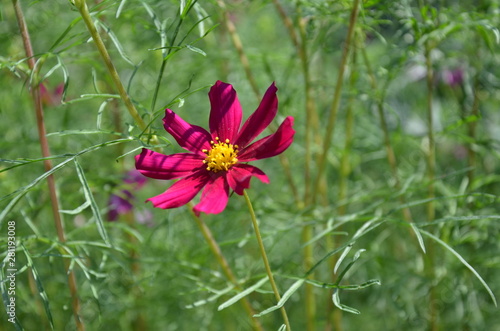 Flower with pink petals on a background of green garden