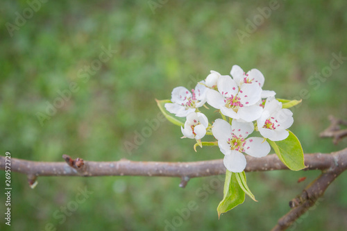 Flowering white pear tree flowers in late spring