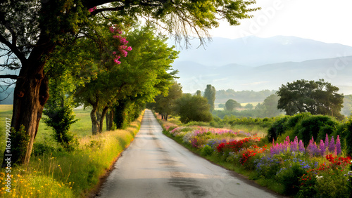 Flower-Lined Rural Road
