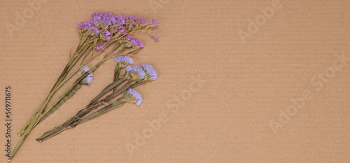 Flowers composition. Pattern made of dried flowers on paper background. Flat lay, top view