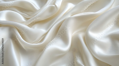 Flowing silk fabric horizontal pure white background textured close-up elegant aesthetic soft light