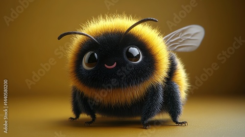 Fluffy, adorable bee with big eyes