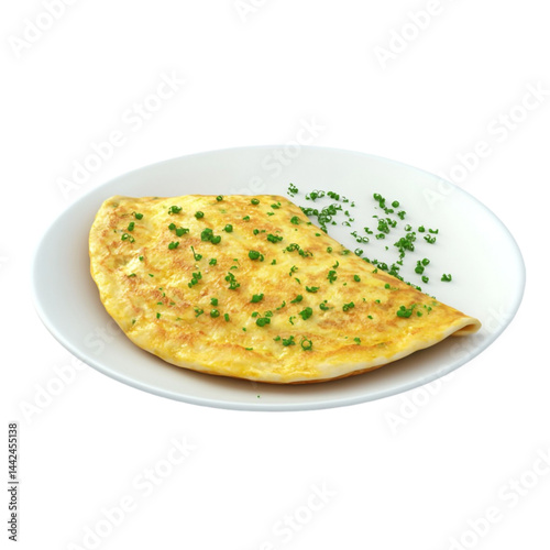 Fluffy omelet on a white plate garnished with fresh chives a simple breakfast or brunch dish
