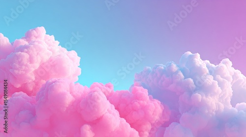 Fluffy pink clouds billow against a gradient blue and purple sky background