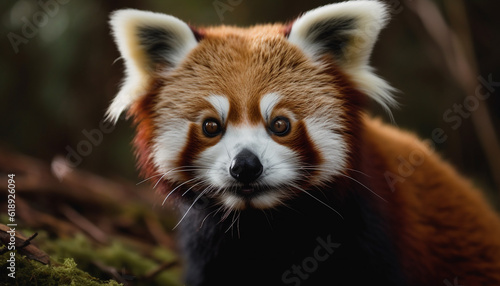 Fluffy Pomeranian sitting in autumn grass outdoors generated by AI